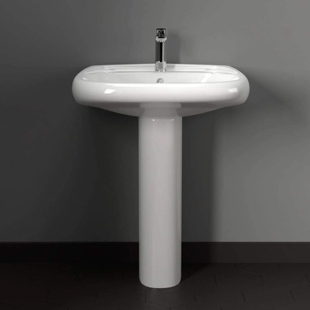 Durable vitreous china construction ensures lasting strength while maintaining a smooth, polished finish. Lightly carved soap dishes add both convenience and subtle decorative detail. A gently raised back completes the design, enhancing the sink’s overall character and presence in the bathroom.