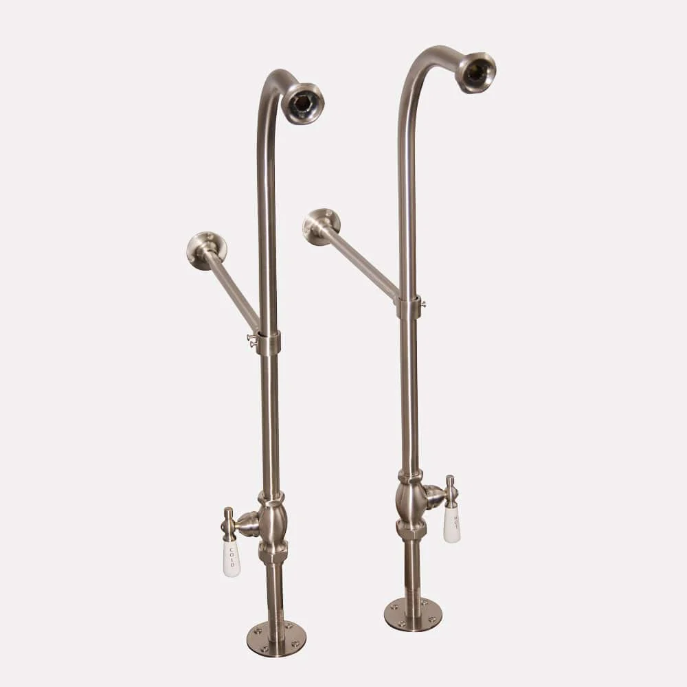 These freestanding bath supplies pair well with a variety of our clawfoot tubs. The porcelain lever handles and gradual curves augment the stellar quality of the tubes.