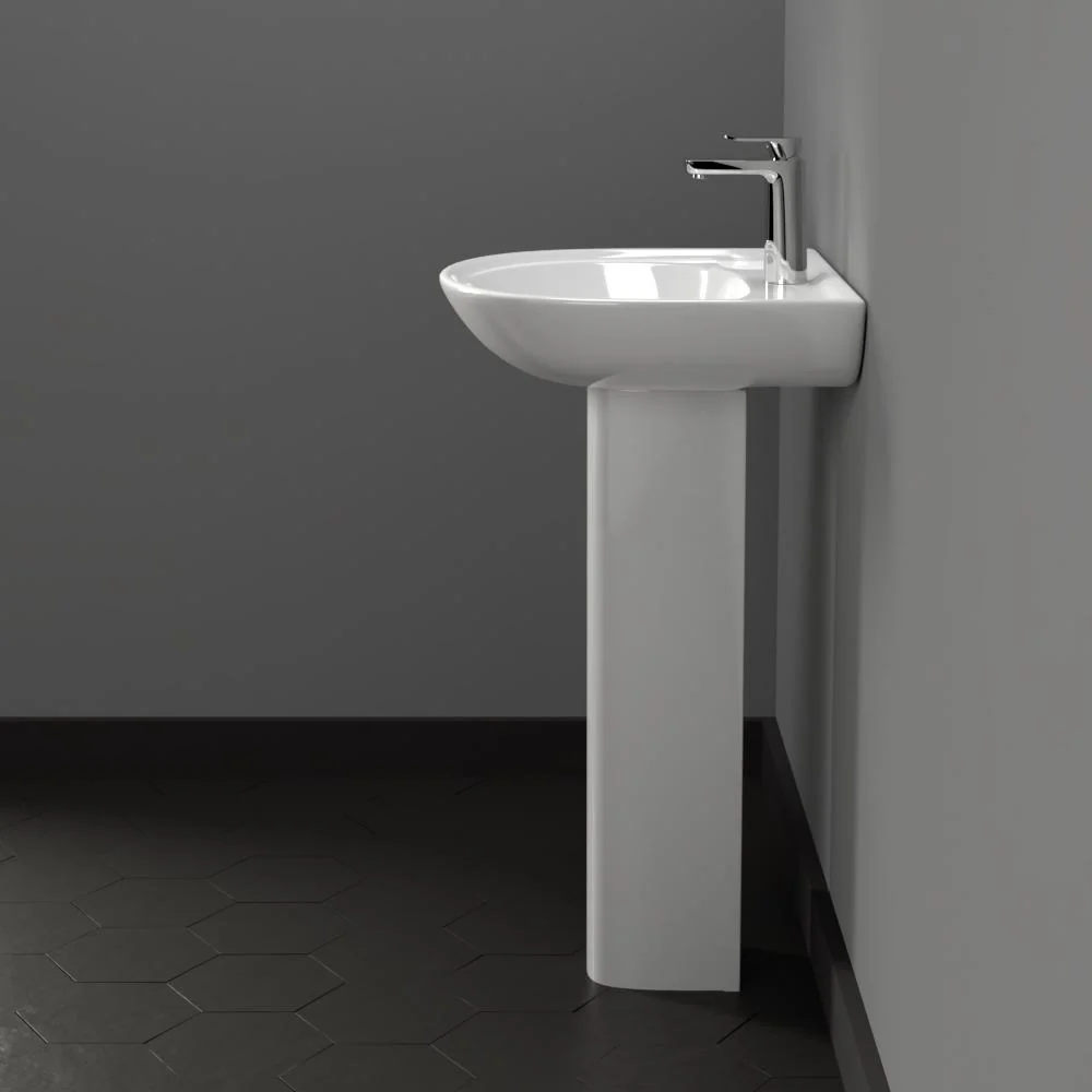 Crafted from durable vitreous china, the Grafton 100 Pedestal Sink offers lasting strength with a smooth, easy-to-clean finish. Its gently curving basin and integrated soap dish combine classic style with everyday convenience, while the slightly raised rim helps keep water contained and your countertop area dry. Designed to balance elegance and practicality, it’s an ideal centerpiece for both traditional and transitional bathrooms.