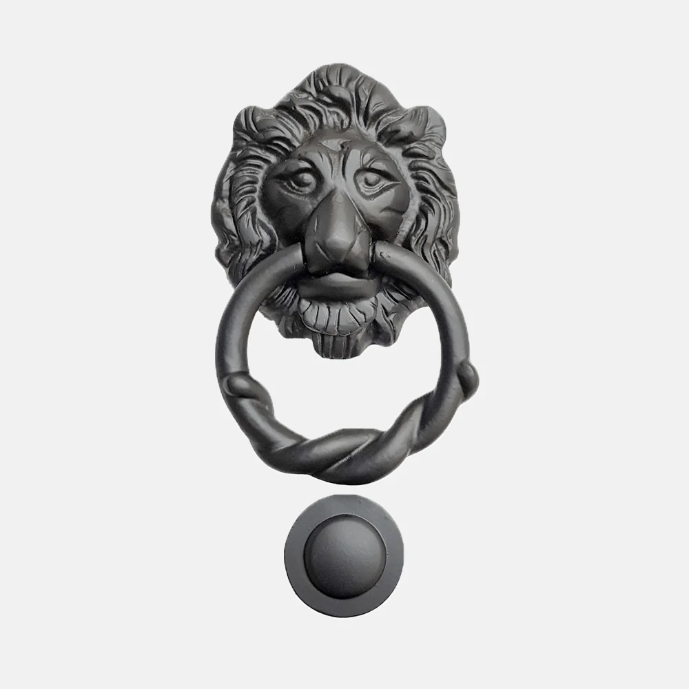 Shaped to resemble a lion's head, this spectacular door knocker will strengthen your home's entrance. The product includes the parts necessary to install swiftly.