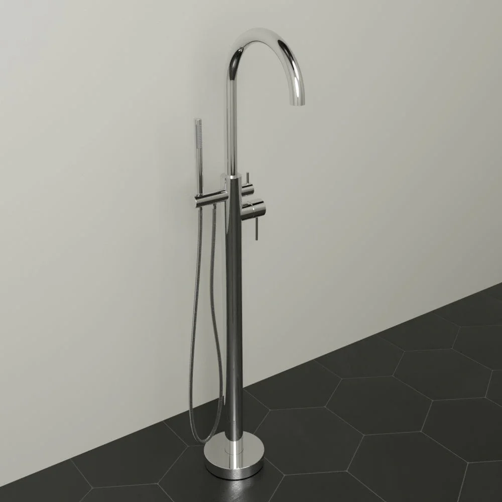 Sporting a built-in thermostatic device to regulate the temperature, this contemporary freestanding tub filler will upgrade any bathroom. The gooseneck spout brings a graceful touch while the wand hand sprayer increases the modern atmosphere surrounding the unit.